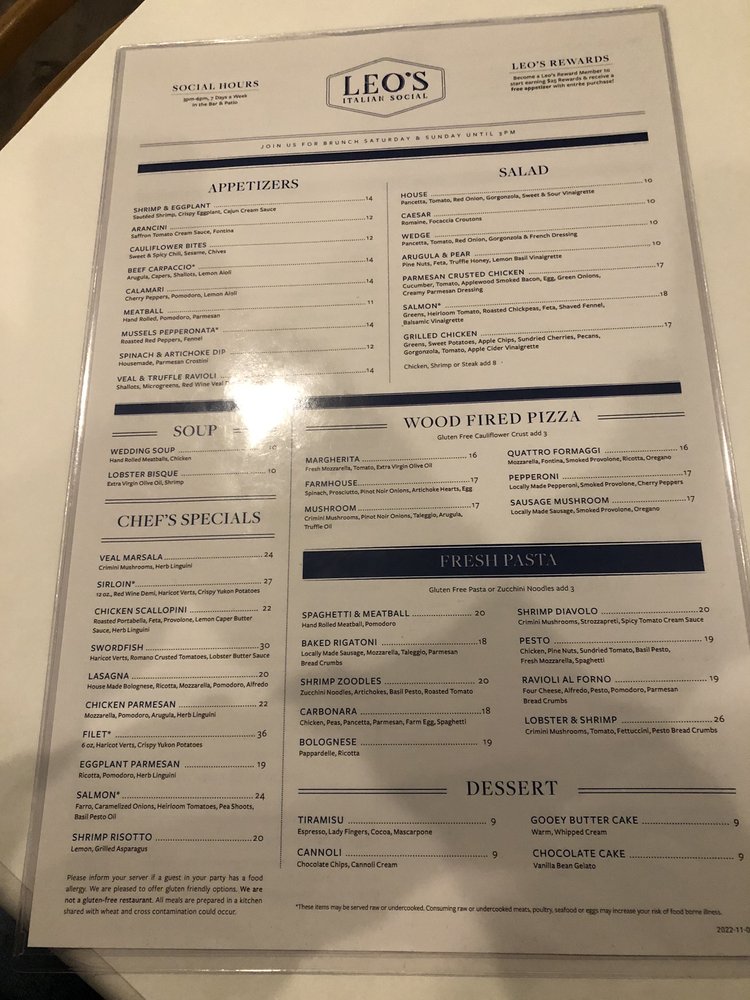 Leo's Italian Social is a bustling Italian eatery in Morrisville, NC that caters to a variety of dining preferences. With a wide range of menu offerings, including spinach dip, calamari, lobster pasta, halibut, mussels, ravioli appetizers, eggplant parm, and rigatoni, there is something for everyone to enjoy. The unique bread served with olive oil and vinegar sets it apart from other Italian restaurants. Customers rave about the exceptional service provided by the staff, particularly mentioning their accommodating attitude towards dietary restrictions. The spacious interior and moderate noise level make it a great spot for gatherings with friends or intimate date nights. If you're looking for a rewarding dining experience, Leo's Italian Social is a must-visit for authentic Italian cuisine and impeccable service.